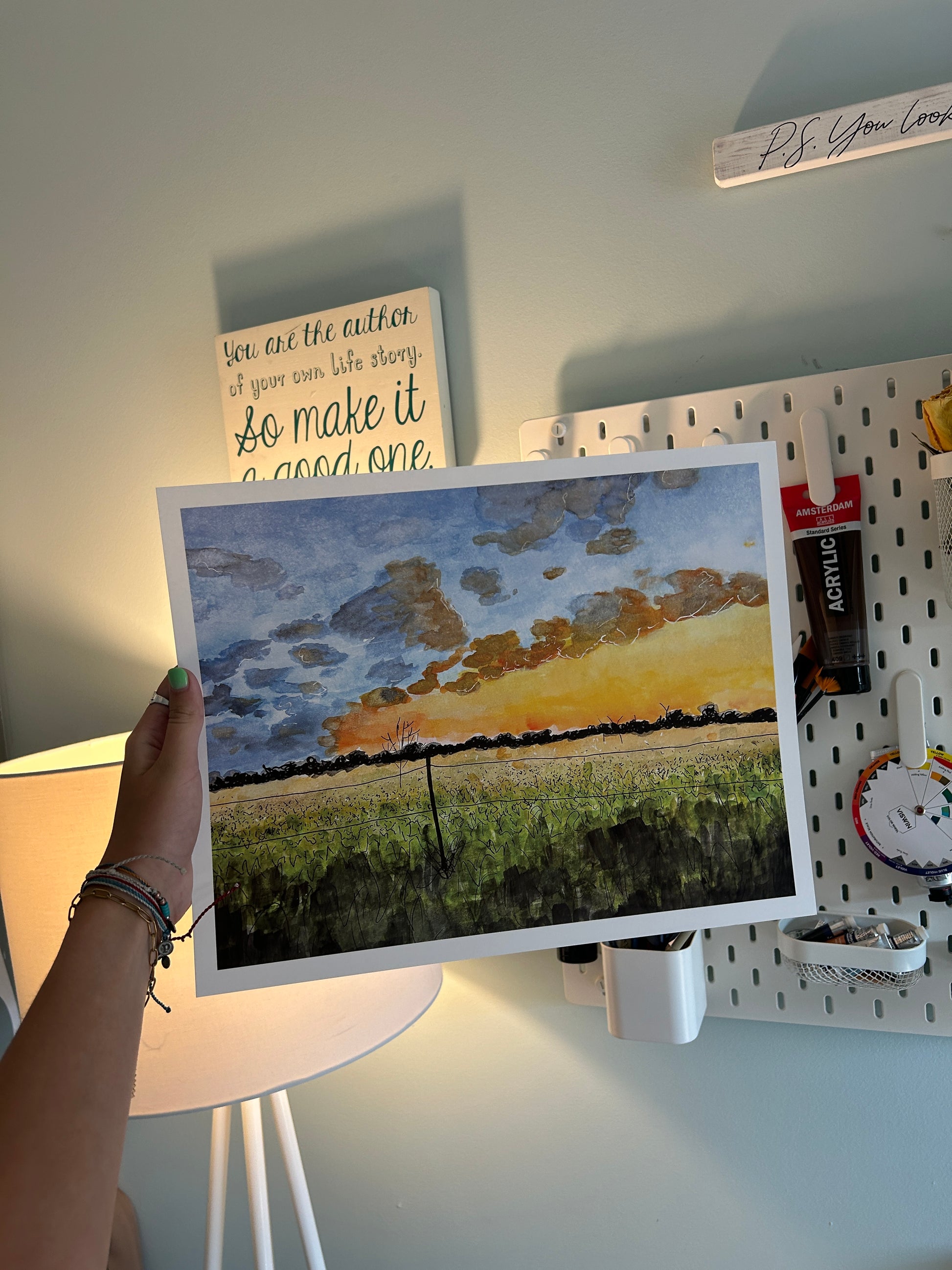 materials: watercolor, ink, fine art photographic paper (thick matte paper with a subtle watercolor texture)